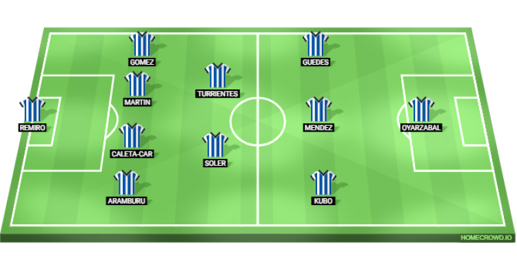 Probable Lineup (4-2-3-1): Remiro; Aramburu, Caleta-Car, Martin, Gomez; Soler, Turrientes; Kubo, Mendez, Guedes; Oyarzabal