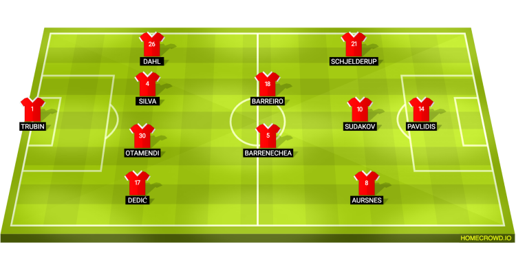 Probable Lineup (4-2-3-1): Trubin; Dedic, Otamendi, Silva, Dahl; Barrenechea, Barreiro; Aursnes, Sudakov, Schjelderup; Pavlidis