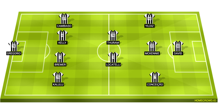 Probable Lineup (4-2-3-1): Di Gregorio; Kalulu, Bremer, Kelly, Cambiaso; Locatelli, Thuram; Conceicao, McKennie, Yildiz; David