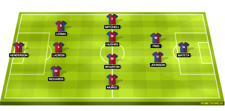 Probable Lineup (3-4-2-1): Henderson; Richards, Lacroix, Lerma; Munoz, Wharton, Hughes, Mitchell; Johnson, Yeremy; Mateta