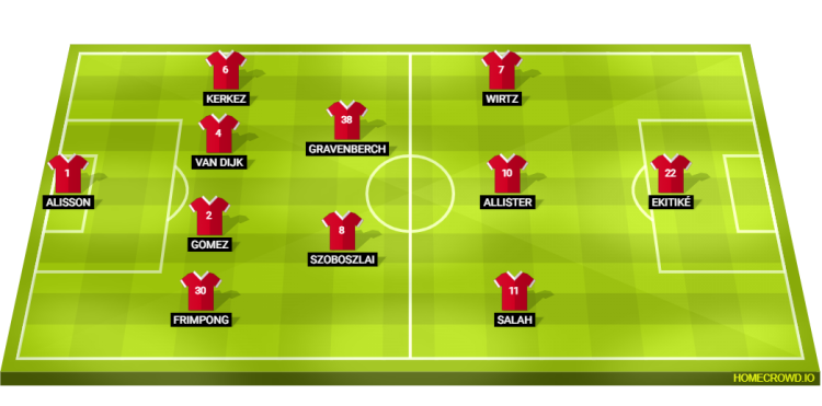 Predicted Liverpool XI: Alisson; Frimpong, Gomez, van Dijk, Kerkez; Szoboszlai, Gravenberch; Salah, Mac Allister, Wirtz; Ekitike