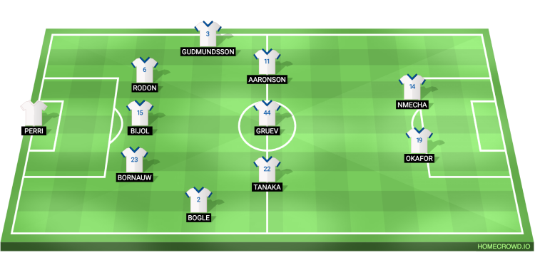 Probable Lineup (3-5-2): Perri; Bornauw, Bijol, Struijk; Bogle, Tanaka, Aaronson, Gruev, Gudmundsson; Nmecha, Okafor