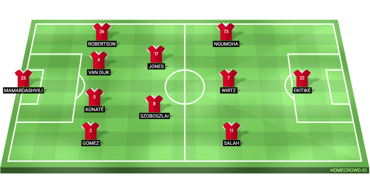 Predicted Liverpool XI: Mamardashvili; Gomez, Konate, van Dijk, Robertson; Szoboszlai, Jones; Salah, Wirtz, Ngumoha; Ekitike