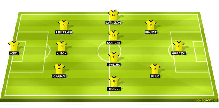 Probable Lineup (3-4-2-1): Kobel; Reggiani, Anton, Bensebaini; Ryerson, Nmecha, Sabitzer, Svensson; Beier, Brandt; Guirassy