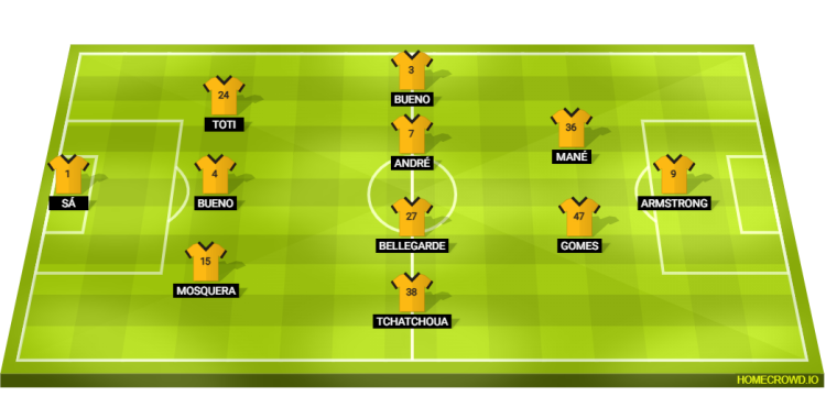 Probable Lineup (3-4-2-1): Sa; Mosquera, Santiago Bueno, Toti Gomes; Tchatchoua, Bellegarde, Andre, Hugo Bueno; Angel Gomes, Mane; Armstrong