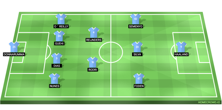 Probable Lineup (4-2-3-1): Donnarumma; Nunes, Dias, Guehi, O’Reilly; Rodri, Reijnders; Foden, Silva, Semenyo; Haaland