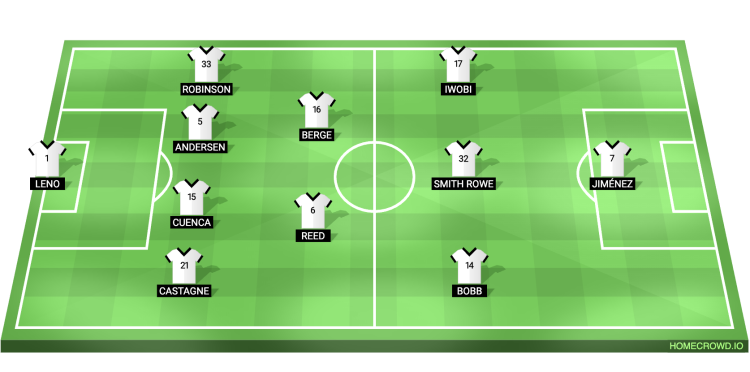 Probable Lineup (4-2-3-1): Leno, Castagne, Andersen, Cuenca, Robinson; Reed, Berge; Bobb, Smith Rowe, Iwobi; Jimenez