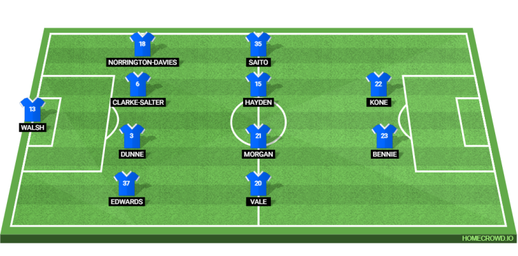 Probable Lineup (4-4-2): Walsh; Edwards, Dunne, Clarke-Salter, Norrington-Davies; Vale, Morgan, Hayden, Saito; Bennie, Kone