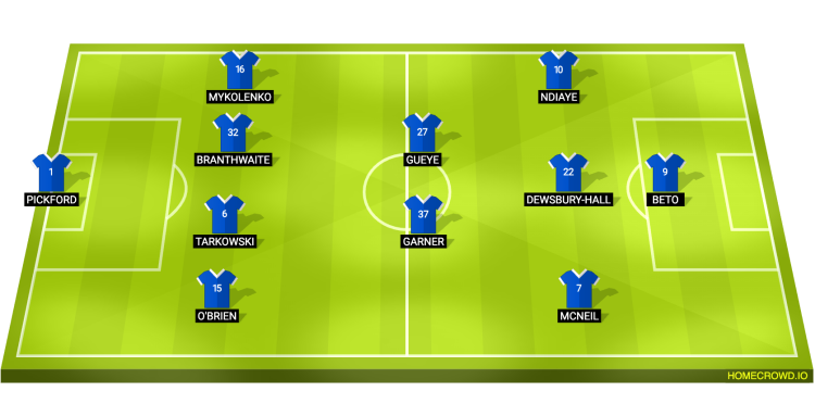 Probable Lineup (4-2-3-1) – Pickford; O’Brien, Tarkowski, Branthwaite, Mykolenko; Garner, Gueye; McNeil, Dewsbury-Hall, Ndiaye; Beto