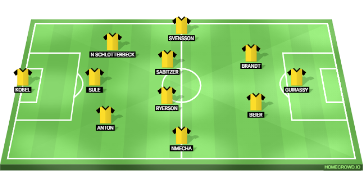 Probable Lineup (3-4-2-1): Kobel; Sule, Anton, Nico Schlotterbeck; Ryerson, Sabitzer, Nmecha, Svensson; Beier, Brandt; Guirassy