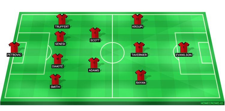 Probable Lineup (4-2-3-1): Petrovic, Smith, Diakite, Senesi, Truffert; Adams, Scott; Rayan, Tavernier, Kroupi; Evanilson