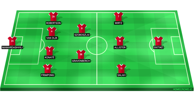 Probable Lineup (4-2-3-1): Mamardashvilli; Frimpong, Konate, Van Dijk, Robertson; Gravenberch, Szoboszlai; Salah, Mac Allister, Wirtz; Ekitike