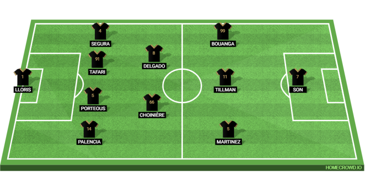 Probable Lineup (4-2-3-1): Lloris; Palencia, Porteous,Tafari, Segura; Choiniere, Delgado; Martinez, Tillman, Bouanga; Son