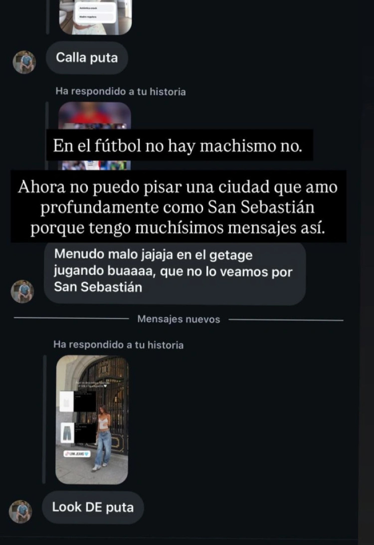 Grande posted on her story some responses to the Instagram story she had up at the time, with the caption ‘In football, there’s no misogyny, no. Now I can’t set foot in a city that I love deeply like San Sebastian because I have a lot of messages like this.’