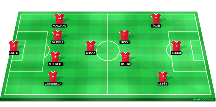 Probable Lineup (4-3-3): Roefs; Geertruida, Alderete, Mukiele, Masuaku; Sadiki, Xhaka, Rigg; Le Fee, Isidor, Talbi