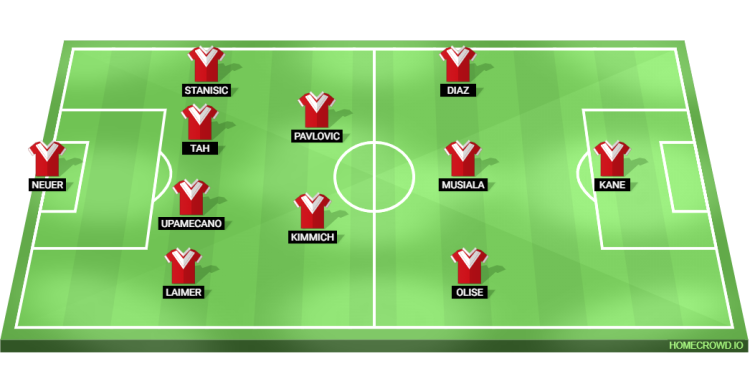 Probable Lineup (4-2-3-1): Neuer; Laimer, Upamecano, Tah, Stanisic; Kimmich, Pavlovic; Olise, Musiala, Diaz; Kane